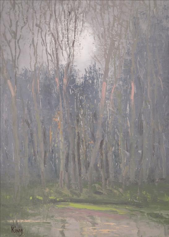In an art world that all too often reflects the turmoil and instability of our times, Raymond King’s paintings stand out as a welcome relief. This prolific artist’s work reflects his relentless interest in capturing the static tension between light and shadow, while at the same time relating a distinct sense of movement.